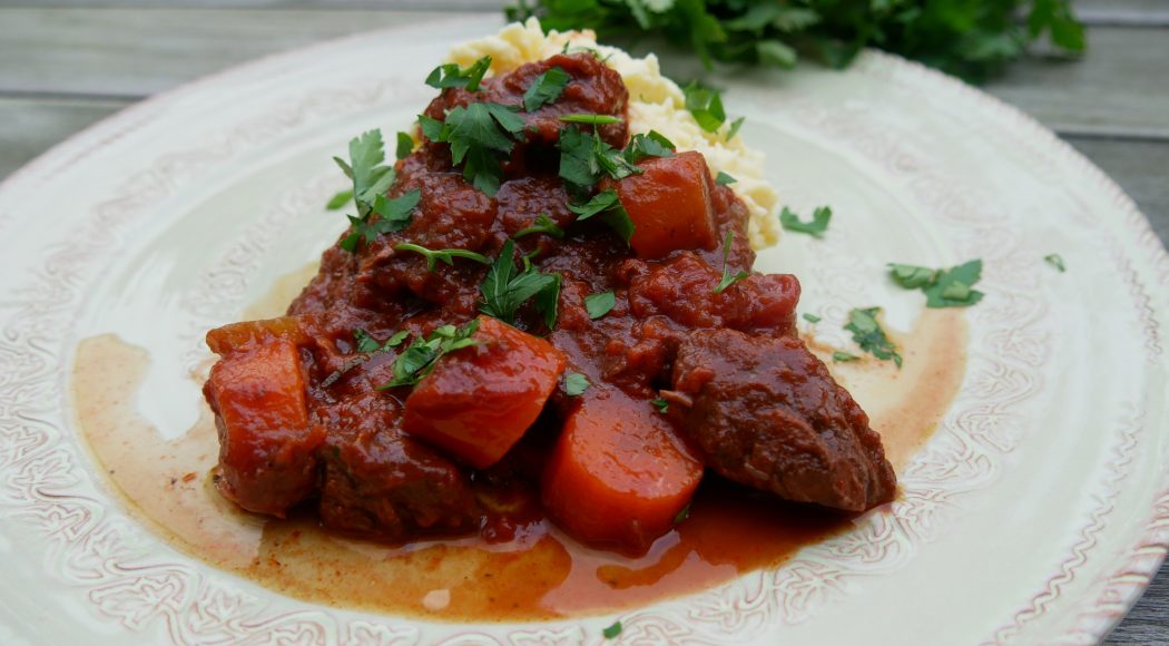 Ein lange vor sich hin schmurgelndes Rinder-Ragout ist genau das Richtige für einen kühlen Winter-Sonntag und kocht sich dazu noch fast wie von selbst. Bei der Menge für sechs Personen ist sogar noch ein überraschender Besuch mit drin oder man friert die Reste einfach ein. Aufgewärmt macht es genauso glücklich und schmeckt immer wieder klasse!