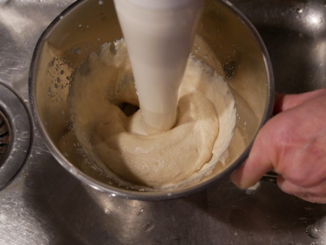 Marzipan mit wenig Milch zu einer dicklichen Creme glatt rühren.