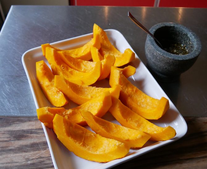 Nudelrolle mit Kürbis, Spinat und Salbei-Butter