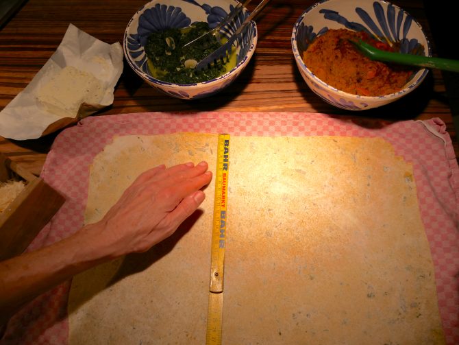 Nudelrolle mit Kürbis, Spinat und Salbei-Butter