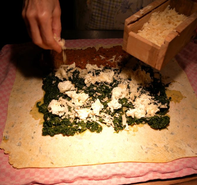 Nudelrolle mit Kürbis, Spinat und Salbei-Butter