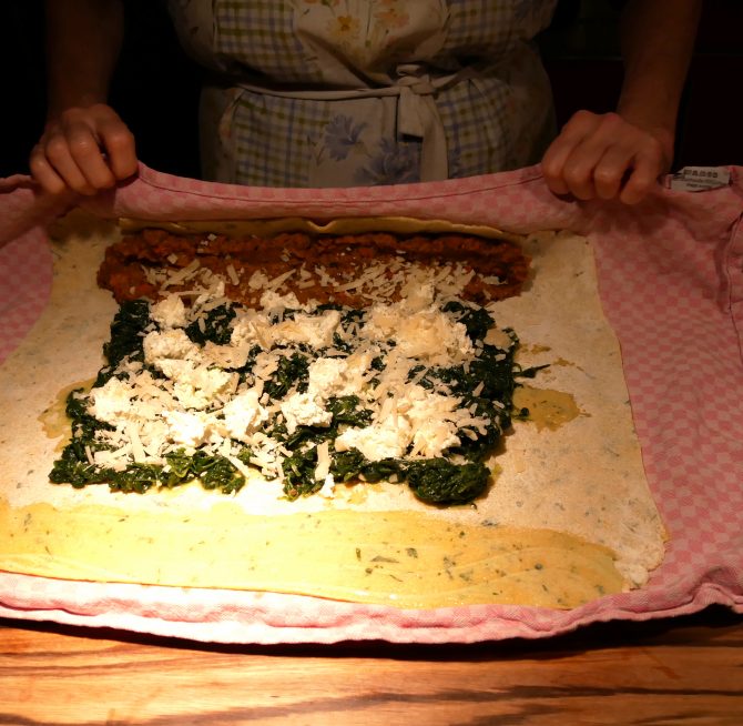 Nudelrolle mit Kürbis, Spinat und Salbei-Butter