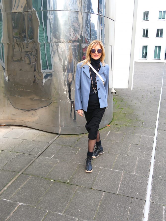 Hier mein schwarzer Bestie über Jeans & Rolli, unter einem dicken Pulli – am Strand.😊 Und macht er nicht ein wunderbares Silhouetten-Update? Da darf er beim Laufen, Drehen und Bewegen ruhig mal rausblizten.