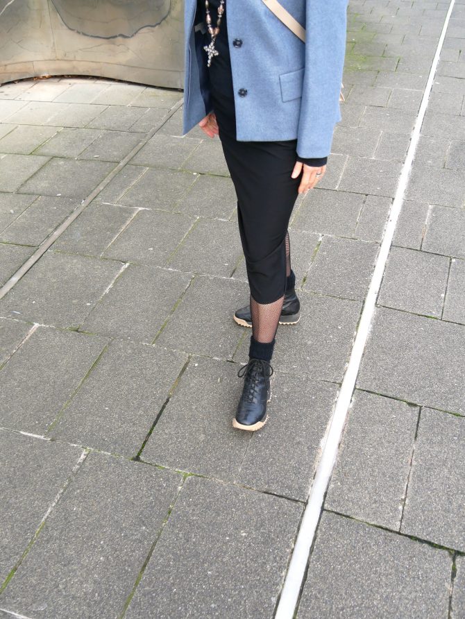 Hier kombiniert zur schwarzen Lederhose und meinen Samt-Booties, die ich einfach mal öfter tragen sollte. … Wenn mir kalt wird, kommt die Fake-Fur Weste drüber.