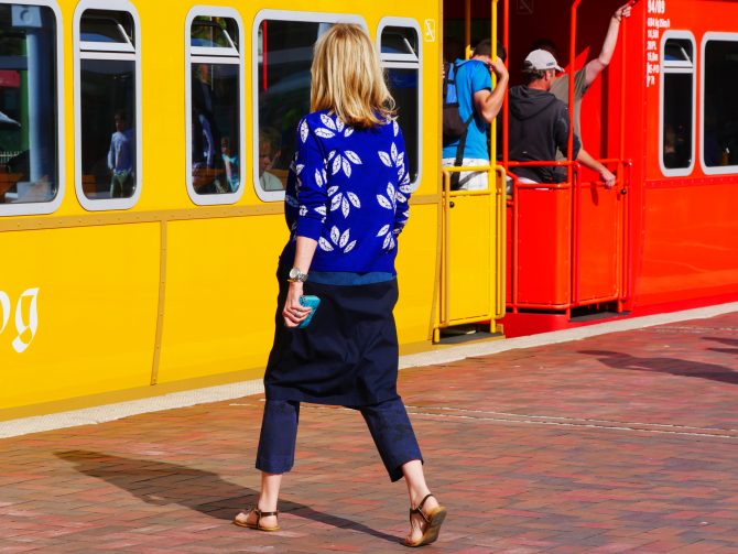 Ich trage meinen Rückenwärmer drunter und drüber - im Lagenlook unter Pullis, über der Hose oder wie hier über einem feinen Taftrock. Beim Laufen, Drehen und Bewegen darf er gerne auch sichtbar werden. Mit derben Boots, warmen Leggings und lockerem Pulli: ganz meins.