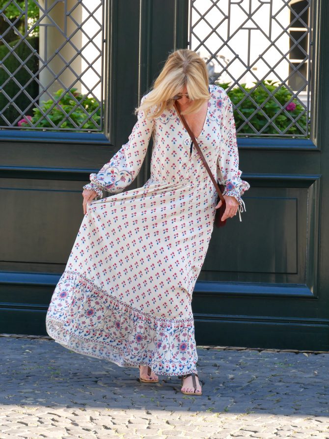 Der geblümte Wrap sitzt nach ein paar Jahren ein bisschen enger um die Hüften. Aber mit dem Seidenkleid drunter, fällt es locker, ist ein Hauch wärmer und schwingt sogar noch schöner.