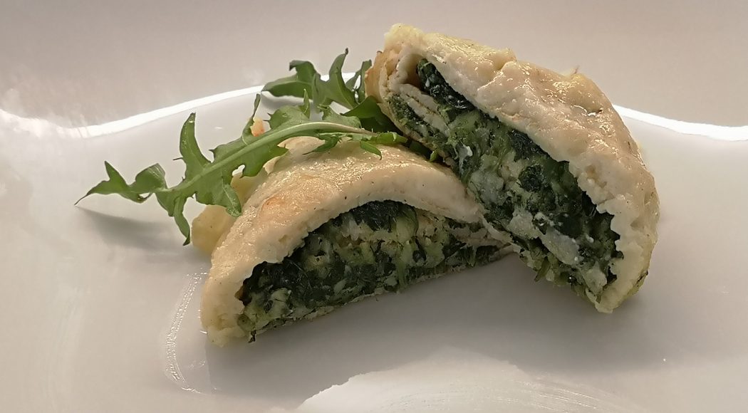 Zutaten für die Spinatfüllung: 450g gekochten Spinat, ausdrücken und fein hacken. 1 fein gewürfelte Zwiebel. 1 ganze Knoblauchzehe. 450 Mozarella in Würfel. 6El geriebenen Trentin-Grana oder Parmesankäse. Salz und Pfeffer, etwas Öl zum Braten.